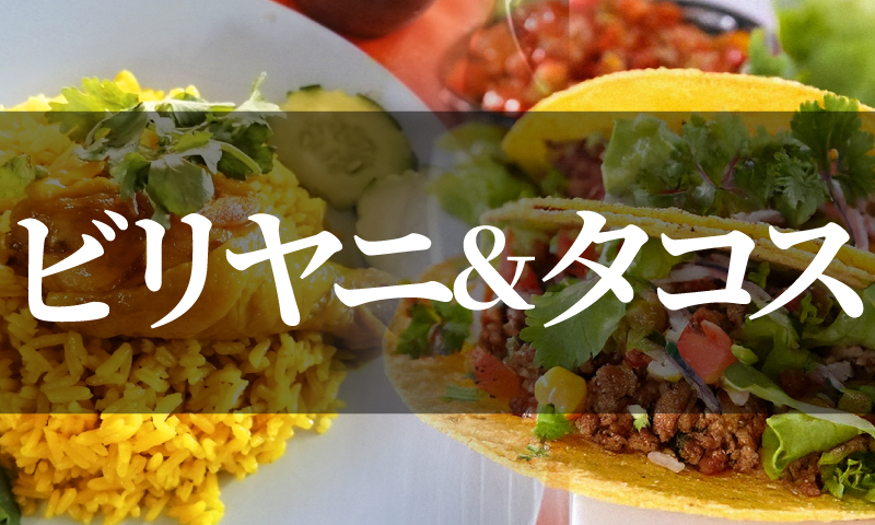タコスは、トマトやレタス、豆、アボカド、サルサなどを好きなように詰め込める“重ねる楽しさ”。ビリヤニは、スパイスとお米、多様な具材で満足感と香り、ちょっとした特別感をくれる。友人や家族でテーブルを囲んで、それぞれ好きな味を頼むのにぴったり♪