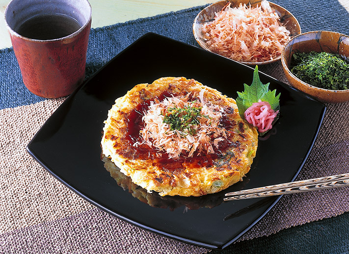 生地がふわっとしていて卵感が強いお好み焼きです✨パサつきがなくしっとりしていて施設様向けの商品になりますのでおすすめです☆