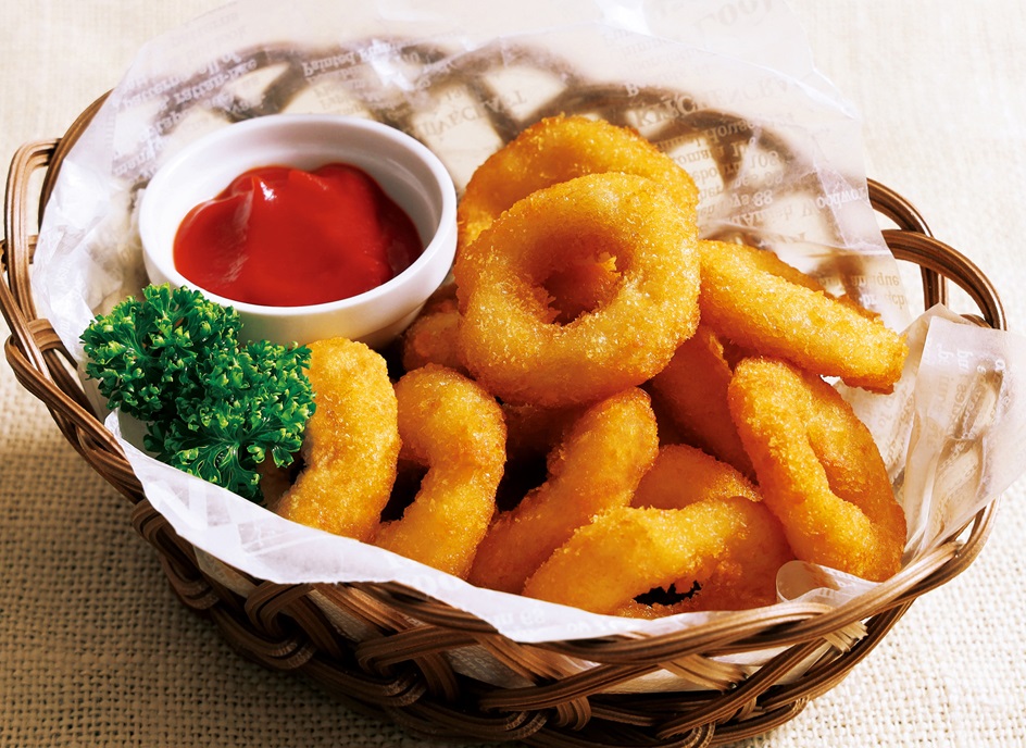 鶏むね肉を使用したリング状のチキンフライです。イカリングよりもかみやすくおすすめです。