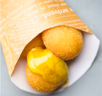 ハインツ日本イエローマスタードとはちみつを1:1の配分で、揚げあがったハインツ日本チーズボールの上にかけます。甘しょっぱさがクセになる一品で簡単にスイーツ風にアレンジできます。