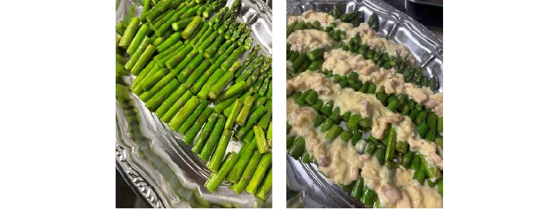 ⑤アスパラガスを器に盛り、ソースをかけて完成。