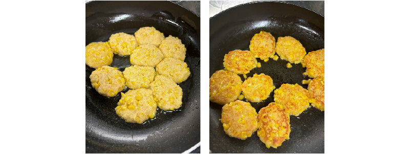 ネタを一口大の楕円形にし、フライパンで薄っすら焼き色が付くくらいに両面を焼く