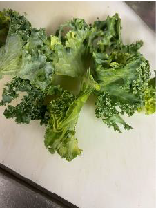 ①ケールは一口大にカット、ニンニクはすりおろす。