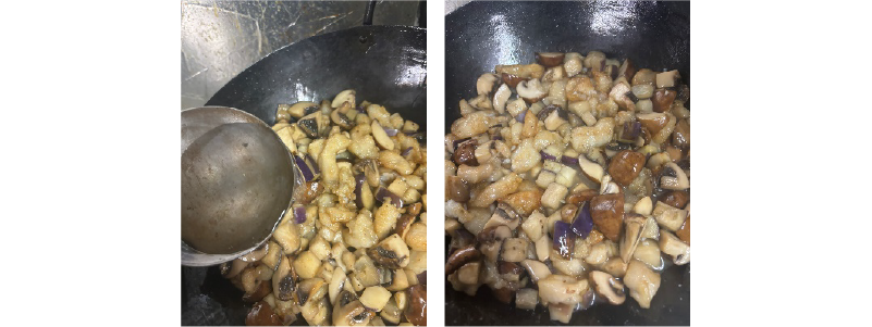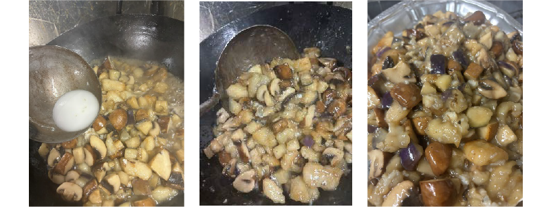 ⑤全体がなじんだら水溶き片栗粉でとろみを付け、最後にゴマ油を混ぜて完成。