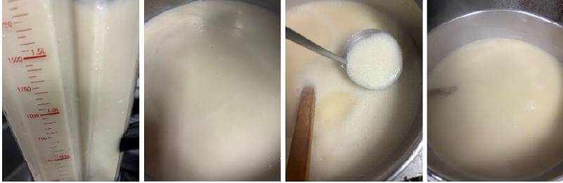 ⑤④の大和芋が柔らかくなったらミキサーで回し、鍋に戻す。
