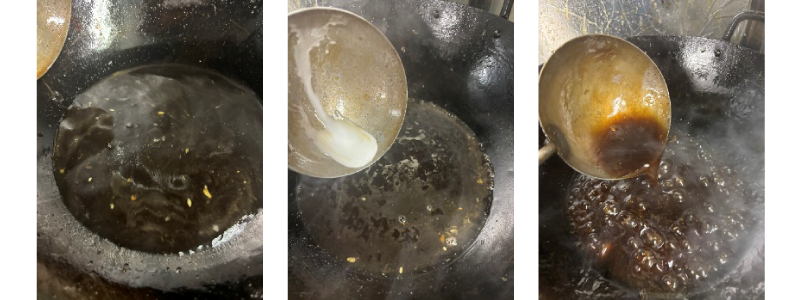 調味料を加熱してタレを作り