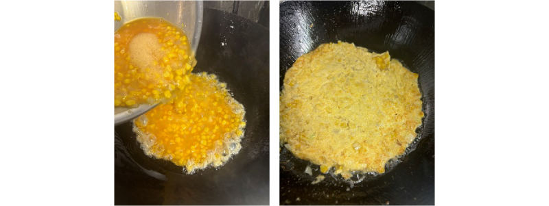 トウモロコシをたっぷり使った中華風玉子焼きを甘酢あんで!