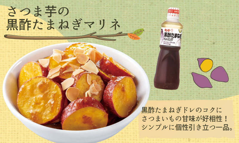 皮付き細さつまいも(揚げ)をQP 黒酢たまねぎドレッシングでマリネして器に盛り、スライスアーモンド(ロースト)を散らす。