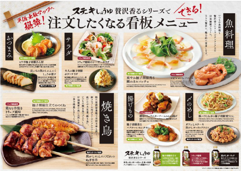 こうした味わいを出す調味料の中でも「柚子胡椒」は知名度・関心が高まっており、「ステーキしょうゆ柚子胡椒仕立て」の発売に至りました。