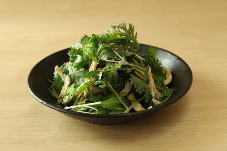 春菊の蒸し鶏シャキシャキサラダさわやか柚子胡椒仕立て