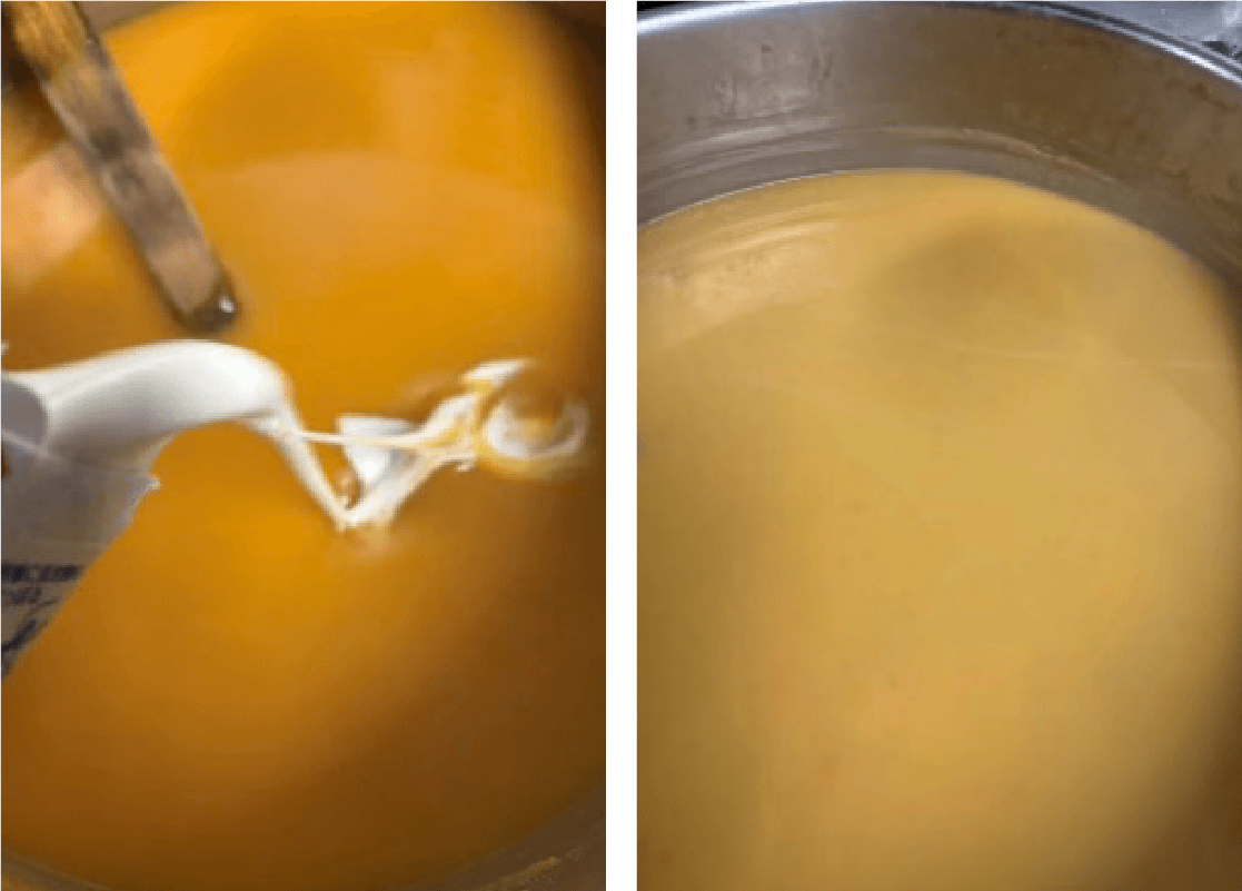 ⑥ ⑤をミキサーで回して鍋に戻し、再度加熱して灰汁を取る。
