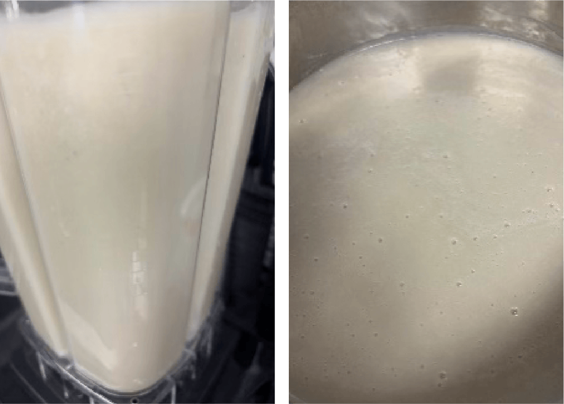 ミキサーで回して灰汁を取ります。