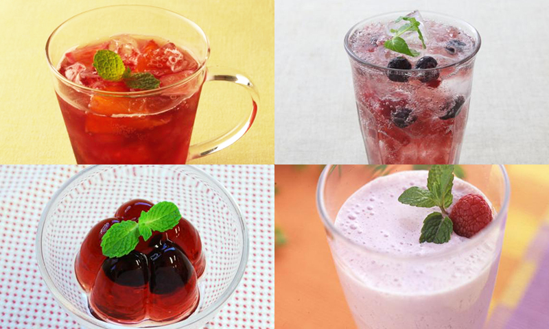 - ゼラチン又は、アガー、寒天で固めてゼリーに、アイスクリームに直接かけて、デザートソースとしても使用可能。