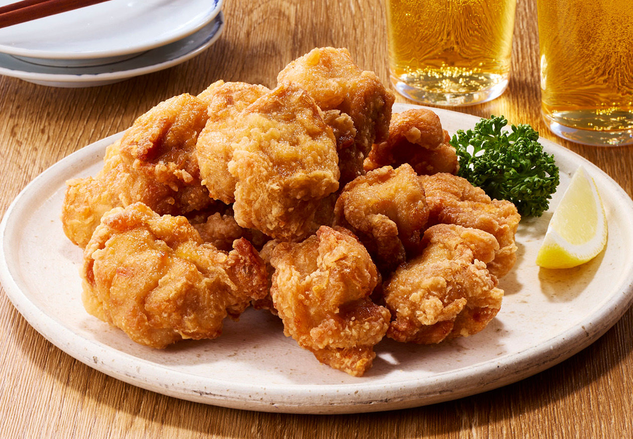 - 鶏もも肉の食感とおいしさが楽しめる、1個約40gと大きめのから揚げ