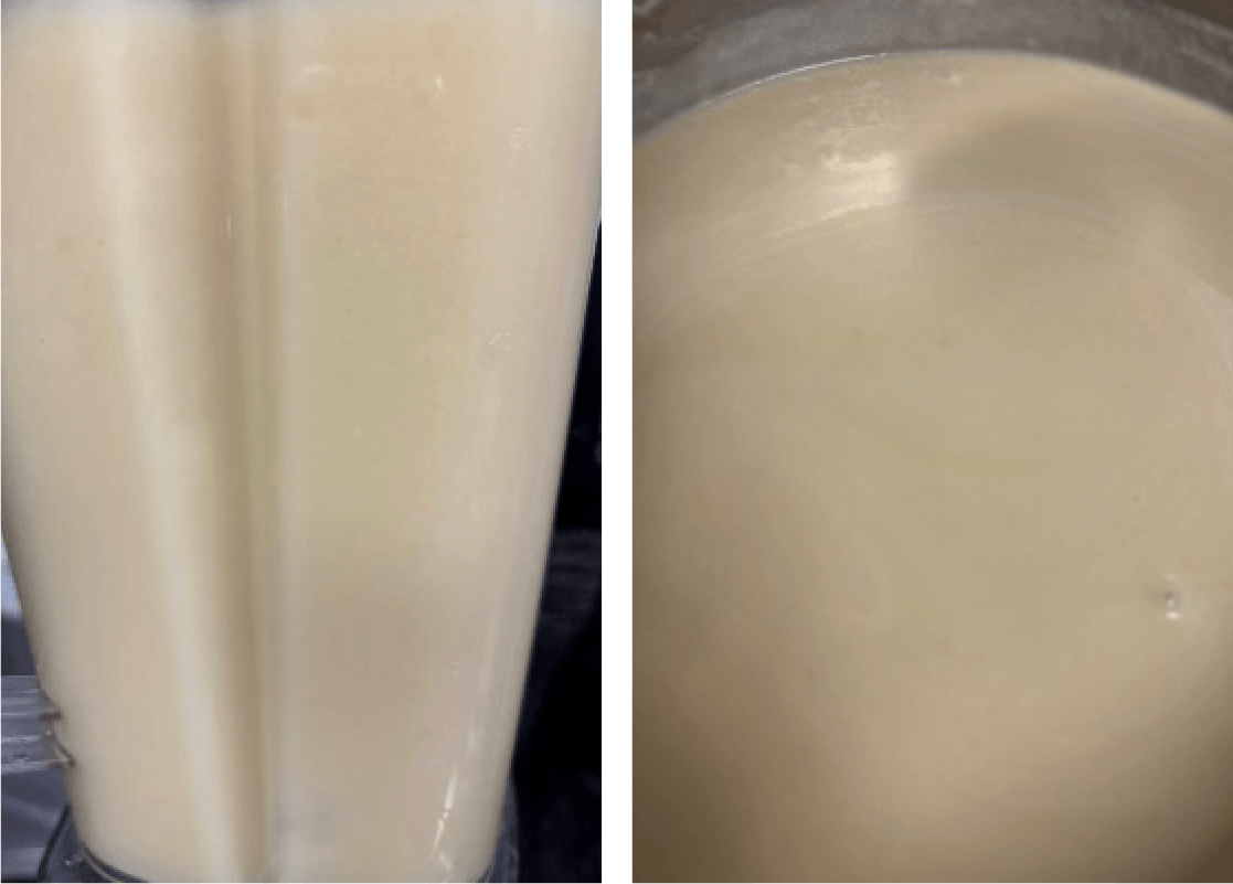 ミキサーで回して再度加熱し、灰汁を取ります。
