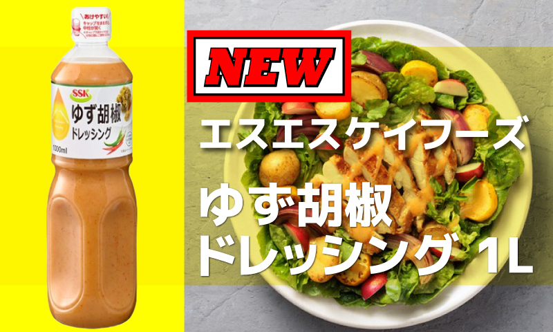 メーカー新商品 【エスエスケイフーズ株式会社】大分県産ゆず胡椒使用!お肉・お魚料理とも相性抜群!ゆずの爽やかな風味が香るピリッと辛いゆず胡椒ドレッシング。
