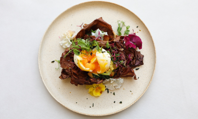 ローストした丸ごとラディッキオと パンツァネッラと半熟卵